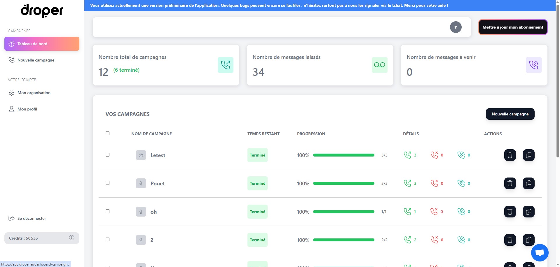 Ça fait pile 1 mois qu’on a lancé Droper (https://droper.ai), un tool de ringless voicemail vous permettant de personnaliser vos messages vocaux en clonant votre voix.