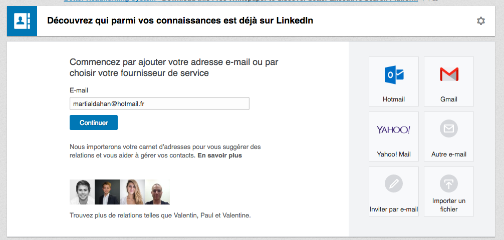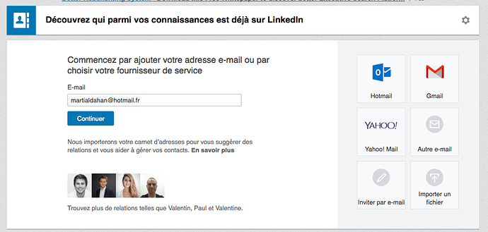 Je pensais envoyer un mail/concours à tous mes utilisateurs afin qu’ils invitent leurs contacts, l’idée est d’accéder aux adresses mail de leur réseau, nous permettant d’envoyer un mail. Je sais que c’est possible avec Gmail / Yahoo / Hotmail par exemple, c’est ce que fait Linkedin et ce qu’a fait au départ Facebook.