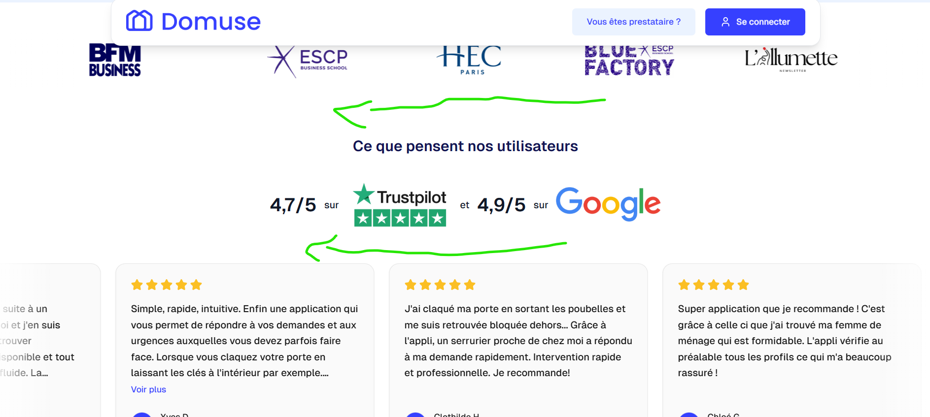 Domuse est une plateforme de mise en relation entre particuliers et prestataires de services à domicile (plomberie, serrurerie, électricité, etc.).