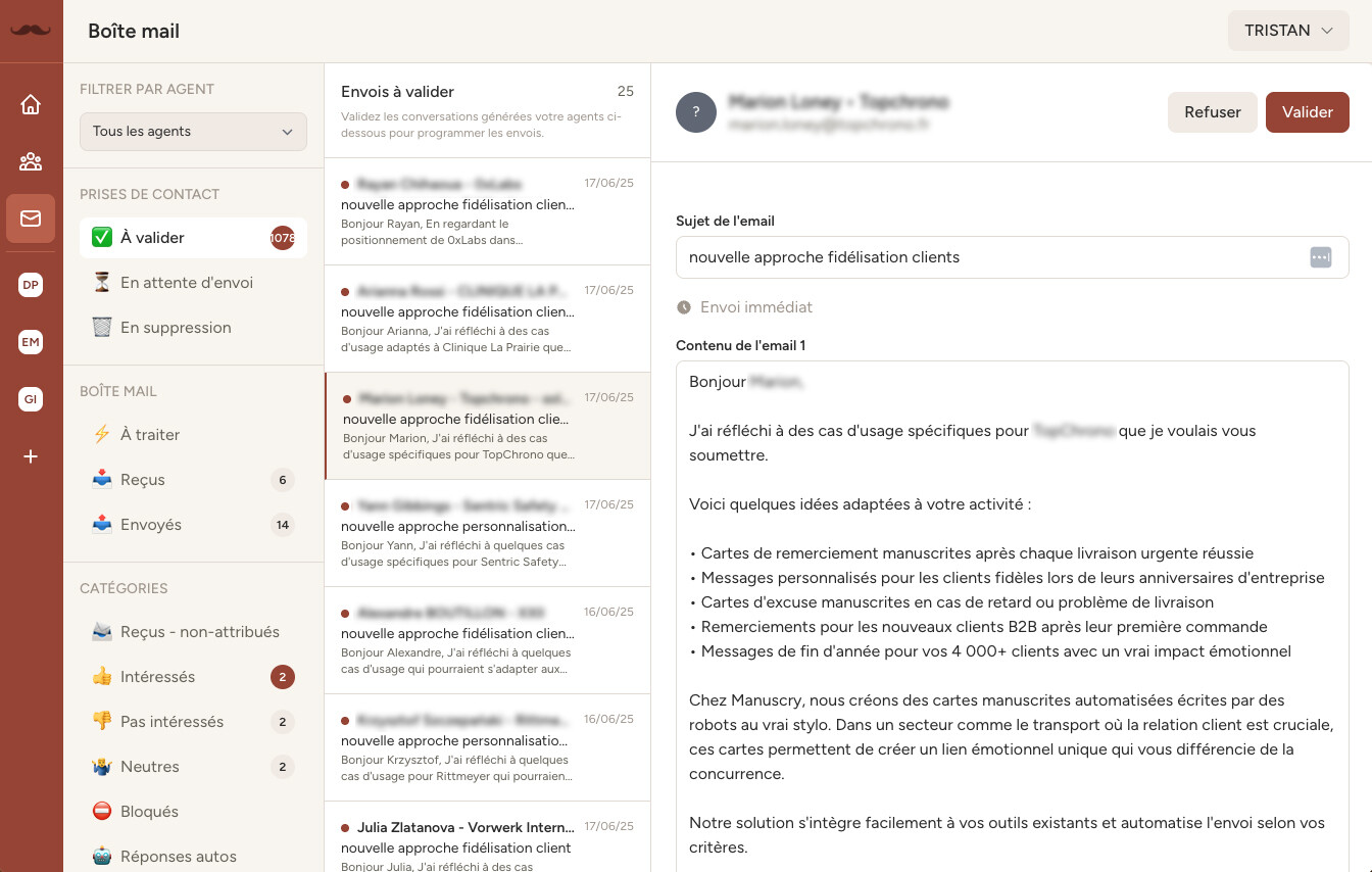 - Il va contacter les prospects par mail avec un contenu ultra pertinent
