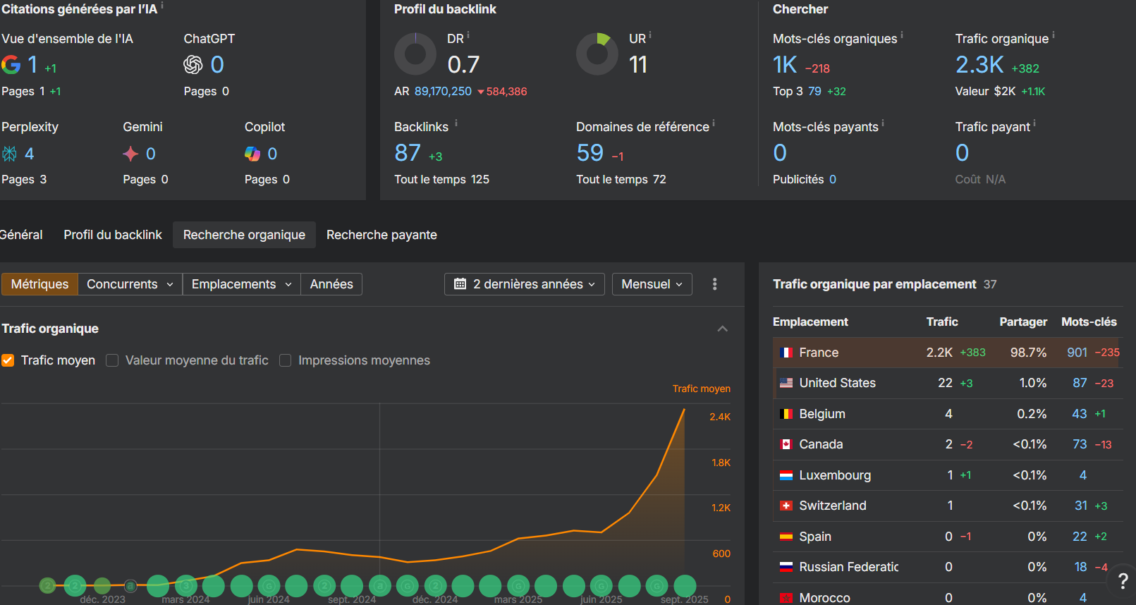 ) et l’historique (traf très très récent, vente juste sur le pique)… on dirait surtout un site boosté à l’achat de clics et une auto de créa de content full IA basé sur les flux RSS d’articles d’actu… pour faire monter le traf rapidos et bien le revendre. Genre, on habille bien la mariée, mais attention à ce qu’il y a dessous ! Ce genre de site ne tient pas longtemps.