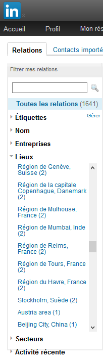Je voudrais savoir si quelqu’un à réussi à filtrer ses contacts LinkedIn par lieux ?