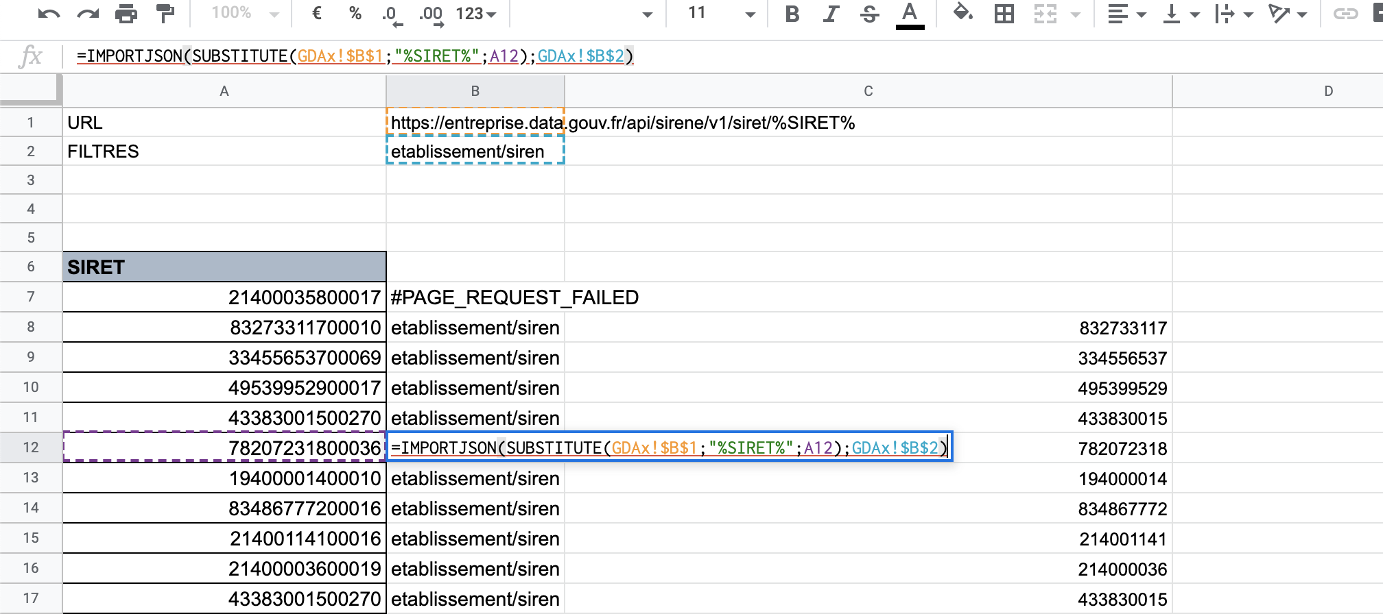 Le fait d’avoir un #erreur m’indique que le n° Siret ou Sirene n’est plus valide ce qui me permet de clean cette base et ce n’est pas forcément un problème.