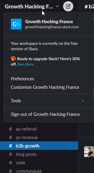 Si quelqu’un a des invitation pour le Slack Growth France, n’hésitez pas lol J’ai du faire la demande y a un an resté lettre morte, je sais pas ce que ça vaut par contre .