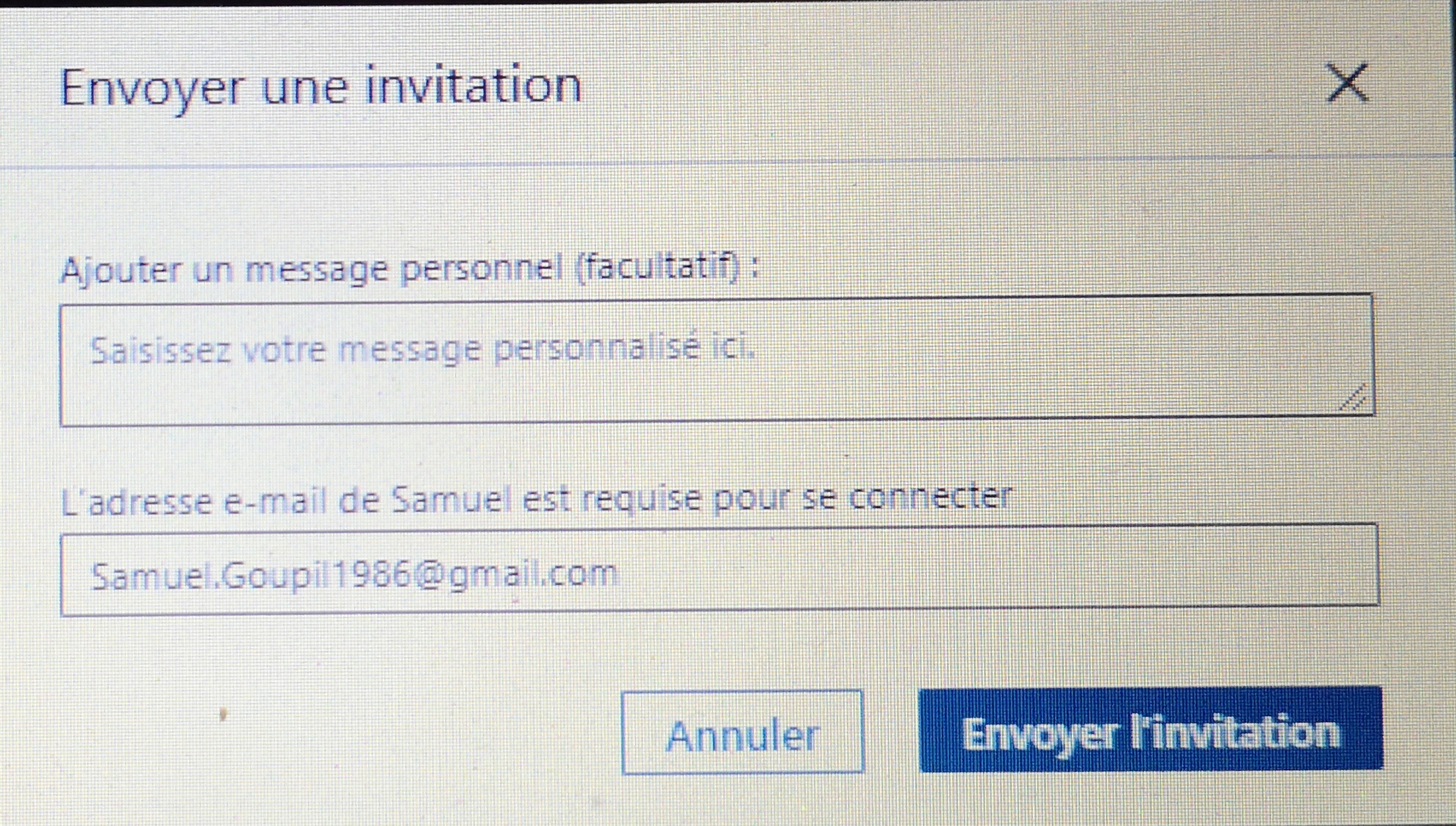 Dernière question, est-ce que pour toi aussi l’envoi des invitations est bloquée par le fait de devoir donner le mail de la personne que LH essaie d’ajouter ?