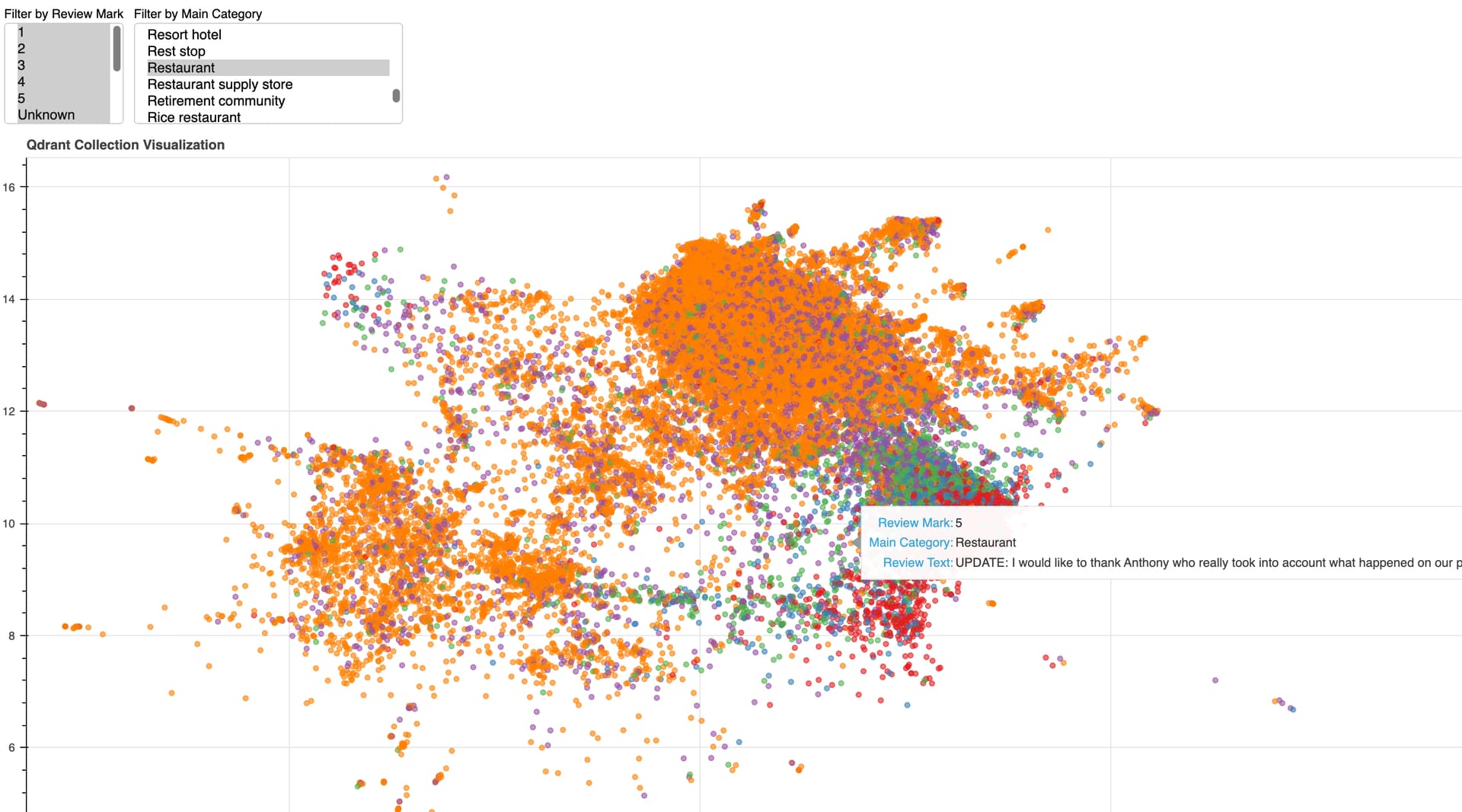 En back, 100% python, des scrapers, des GPUs, des modèles d’embedding open source… j’ai une énorme bases de donnée vectorielles pour capter le contexte de la recherche et le comparer avec les commentaires existants, mise à jour en temps réel. Pour l’instant, je couvre seulement 700 000 business sur Google Maps, et j’ai 120 millions de commentaires vectorisés et indexés. Bientôt le monde entier j’espère.