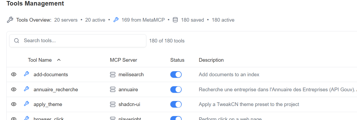 On en a vraiment un paquet de MCP (dont des dev custom) et on centralise la gestion dans https://metamcp.com .