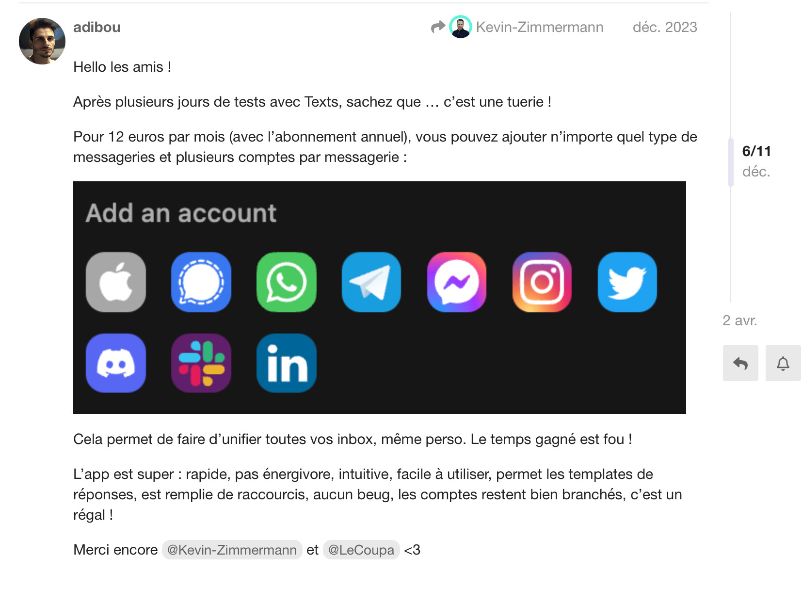 Je t’envoie un extrait d’une discussion où cette application est hautement recommandée par un utilisateur qui l’a testée.