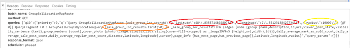 Après analyse des infos envoyées pour récupérer la liste des groupes, j’ai entouré ci-dessous les paramètres déterminants :