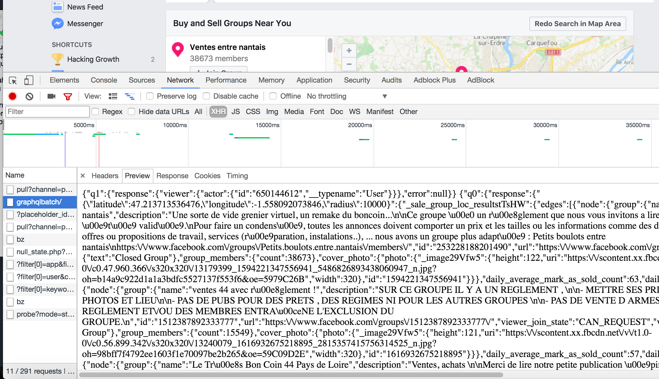 Je suis allé voir la doc de l’API de FB et je ne trouve rien sur la recherche de groupes. On peut avoir les infos d’un groupe seulement si on possède leur ID :