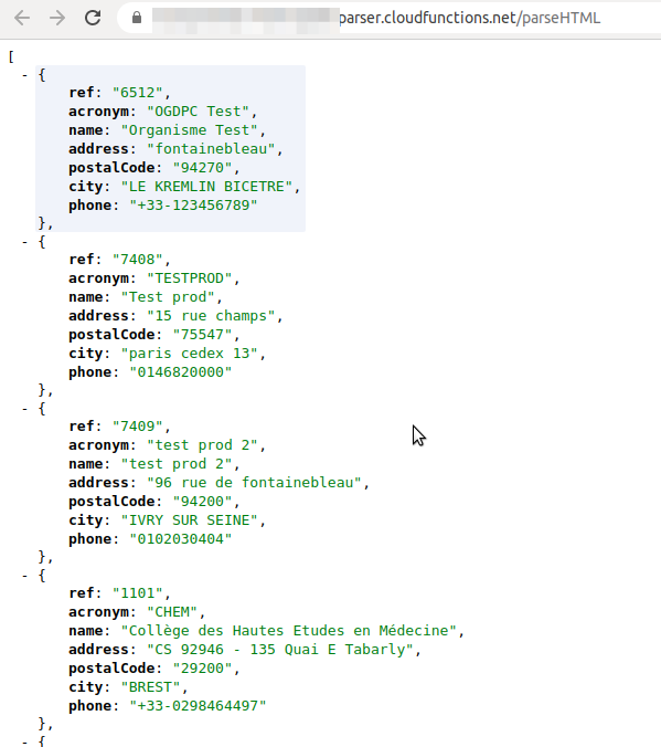 Par ailleurs, pour chaque organisme il existe un lien « fiche organisme » qui renvoi vers une fiche plus détaillée de chaque organisme, ou je dois récupérer également les infos suivantes: