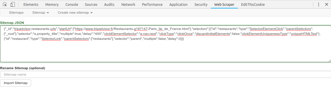 En gros, tu as juste à importer le JSON que tu as montré, via la fonctionnalité « Import Sitemap »: