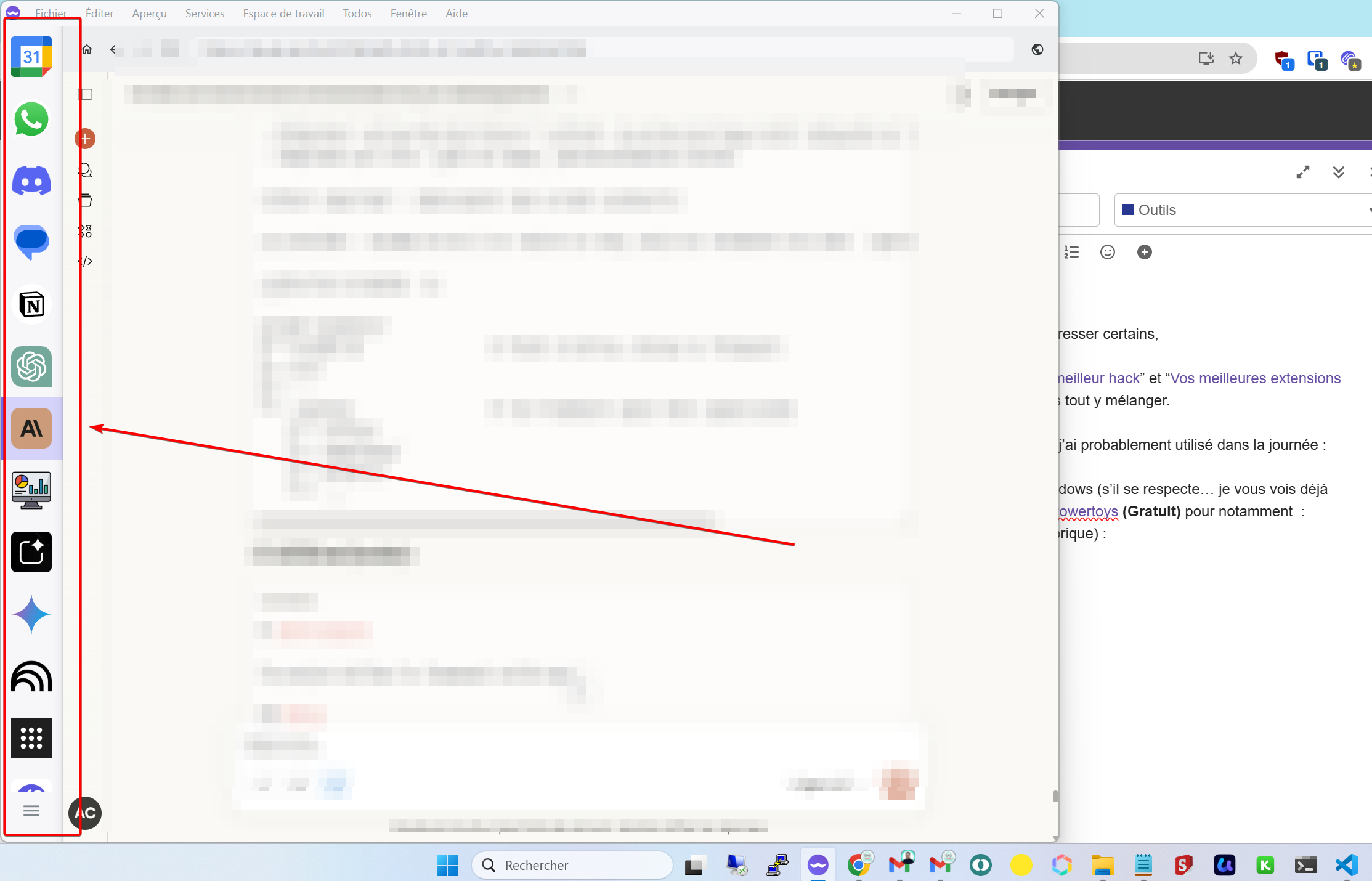 Ne pas oublier les raccourcis Windows intéressant, genre pour lancer l’app ferdium, vu que c’est ma 3ème, je peux faire “Win + 3”